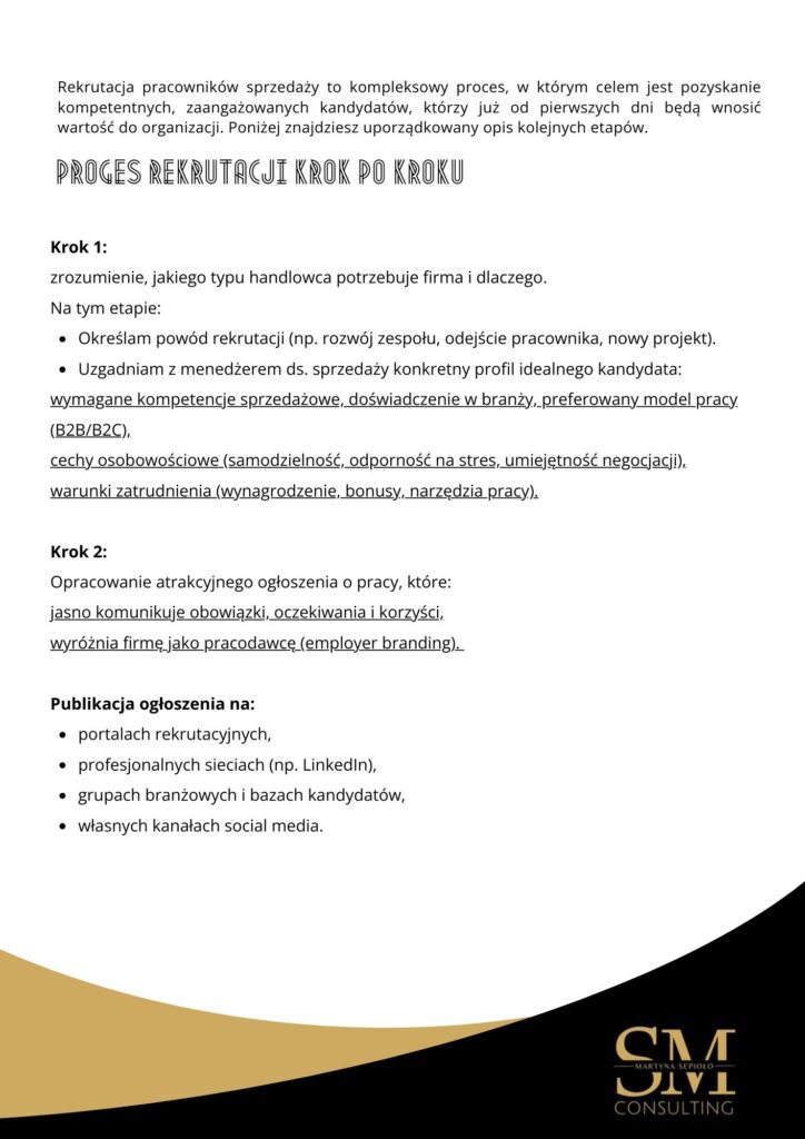 • Realizacja procesu rekrutacji pracowników do działu handlowego